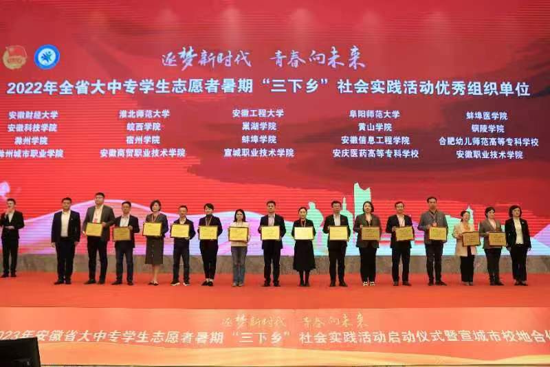 会上,乐鱼平台_乐鱼(中国)一站式服务平台被授予2022年安徽省大中专生学生志愿者暑期“三下乡”社会实践活动优秀组织单位,宣城市委组织部同时向驻乐鱼平台_乐鱼(中国)一站式服务平台人才工作站授牌。