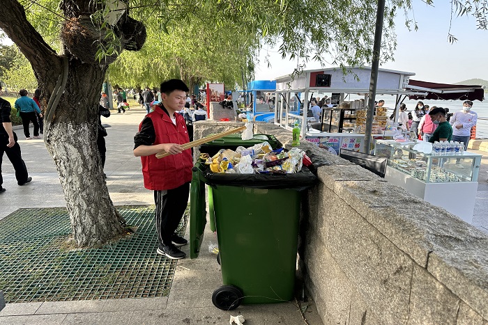 “高低我也得向蚌埠奔赴一次。”志愿者陈鑫说,“我本来是想五一期间来打卡景点的,但在接到学院团委和蚌埠龙子湖团区委的志愿服务倡议后,我第一个就报名了,我觉得以这种方式与蚌埠来一个双向奔赴更有意义。”