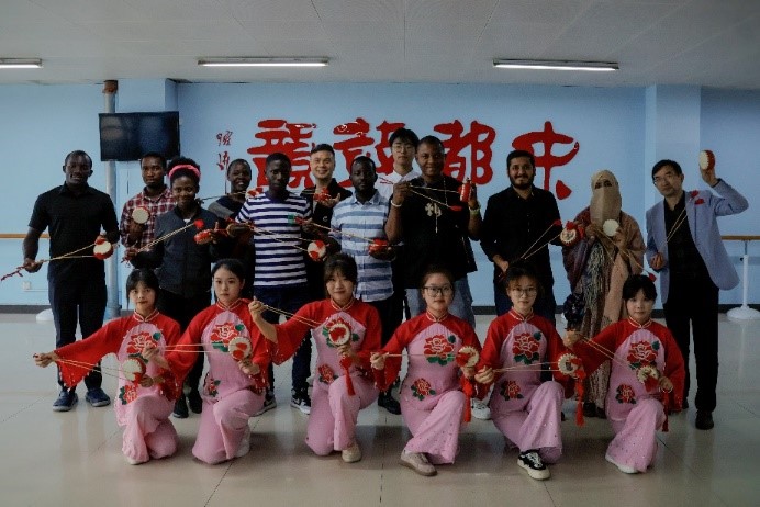 10月11日下午,乐鱼平台_乐鱼(中国)一站式服务平台组织留学生开展中华优秀传统文化体验活动,9名分别来自加纳、乌干达、尼日利亚、巴基斯坦的留学生走进乐鱼平台_乐鱼(中国)一站式服务平台非物质文化遗产传承基地,在花鼓艺术团的带领下,沉浸式体验非遗,感受中国传统文化的魅力。