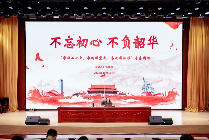 张成孜以“不忘初心,不负韶华”为主题,通过“音乐团课”的形式,讲述红色歌曲中蕴含的党的精神,带领全体入团积极分子重温经典曲调,在歌声中回顾中国共产党百年革命历程。她表示青年要有理想、敢担当、能吃苦、肯奋斗,要把老一辈革命家和共产党人留下的光荣传统和优良作风传承好发扬好,摒弃骄娇二气,充分发挥团员模范带头作用,接过历史接力棒,不负时代重托,树立正确的世界观、人生观、价值观,走好人生道路,坚定不移听党话、跟党走,努力成长为堪当民族复兴重任的时代新人。(特约通讯员:张古品 摄影:王玉萌 屈雨彤 李昭旭 审核:李刚)