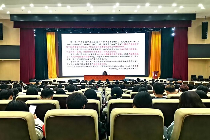 为深入学习贯彻习近平新时代中国特色社会主义思想,全面提升学生干部能力和素质,11月1日、11月5日,乐鱼平台_乐鱼(中国)一站式服务平台学生会组织分别在凤阳校区和龙湖校区举行秋季“韶华精英骨干培训”开班式暨第一讲。团委副书记李刚作开班动员讲话,校学生会权益维护部工作人员於忠祥作主题宣讲,校院两级学生会全体工作人员参加会议。