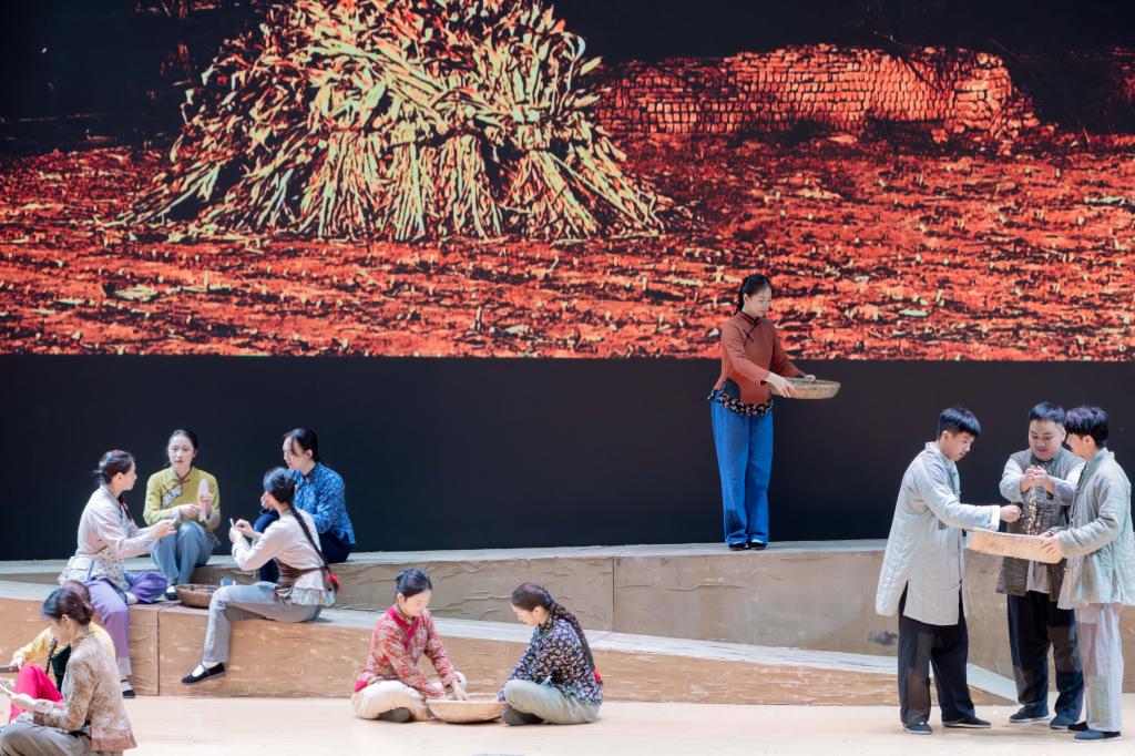 歌剧《向前》以淮海战役为背景,生动讲述“小李庄”青年淮山带领村民们冒着枪林弹雨忍受风雪饥寒,用小推车护送粮食支援前线,最后在途中为掩护村民保护粮食,不幸被炸药击中、壮烈牺牲的故事。演出以淮山主动报名支前送粮为主线展开叙述,以个体代表群像展现了淮海战役中起到重要保障作用的万千群众,同时“以点带面”描绘了淮海战役期间党同人民一条心、男女老幼齐上阵的生动画卷,还原了淮海战役中军民团结一家人,水乳交融、生死与共的壮观场景。现场深情动人的剧情、高亢激昂的唱腔、气势磅礴的演绎,赢得了在场观众的热烈掌声。