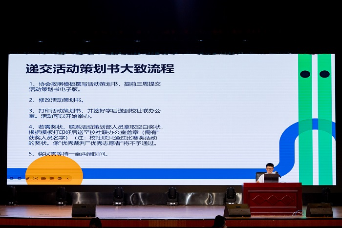 会上,安徽财经大学、蚌埠学院等高校社联组织以视频的形式为本期干部培训班送上祝福。学员代表与全体学员分享了加入学生社团联合会的感想,并畅谈了自己对未来工作的期望与规划。各部门负责人及主席团成员为参会人员详细介绍了各部门工作职能,总结上一学年的工作情况,并对下一学年的各部门的工作开展进行部署。