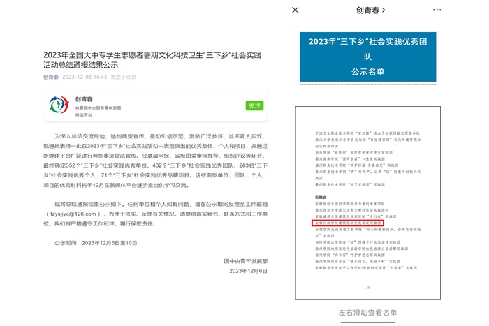 12月6日,共青团中央发布2023年全国大中专学生志愿者暑期文化科技卫生“三下乡”社会实践活动总结通报结果,乐鱼平台_乐鱼(中国)一站式服务平台建筑学院“拾遗”发展成就观察团脱颖而出,荣获全国“2023年‘三下乡’社会实践优秀团队”称号。