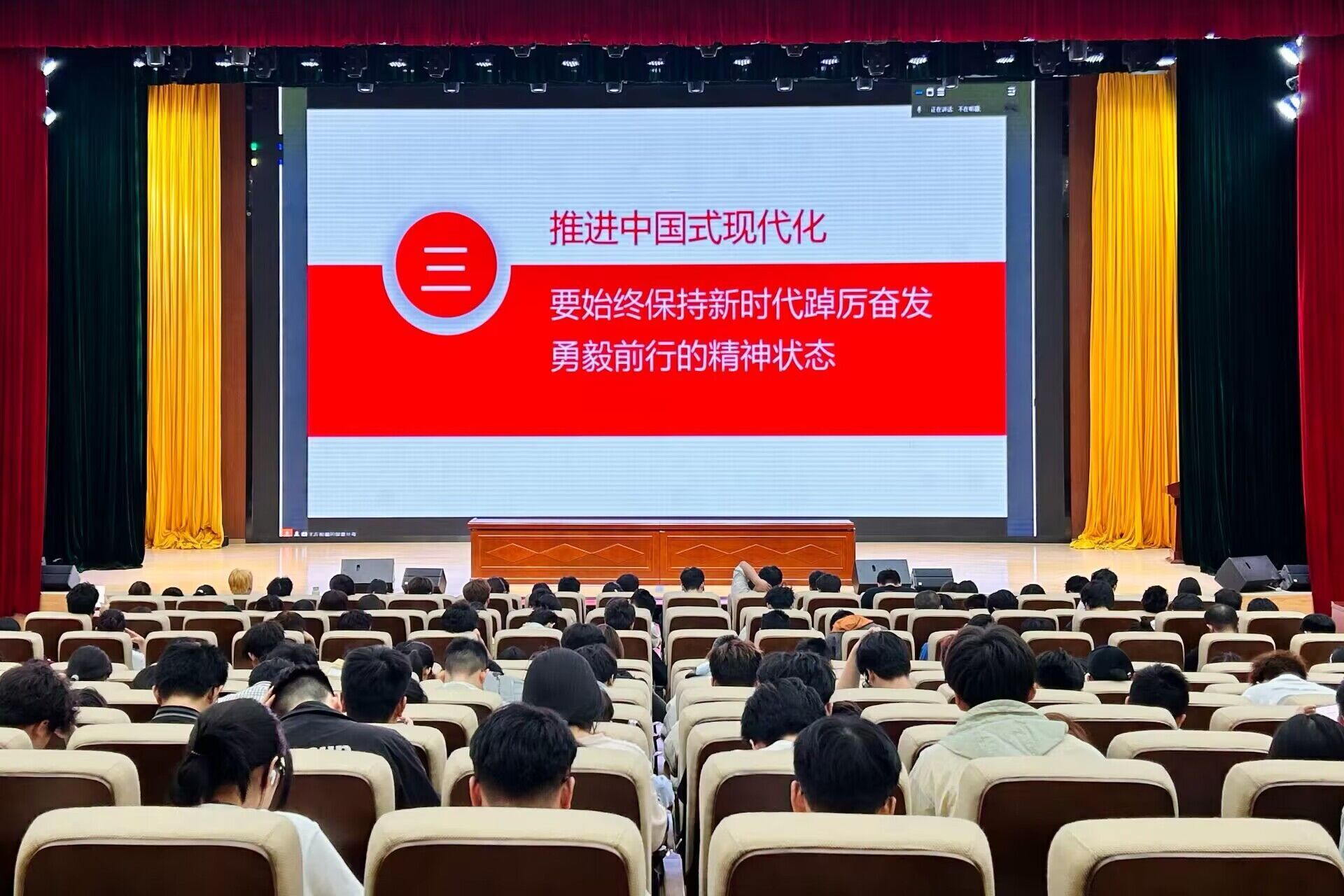 张聪就学生会的职责以及学生会组织成员自身建设提出要求,点明学生会要努力为同学办实事,真正深入同学们当中去,将“全心全意为同学服务”的宗旨落到实处。张聪以“中国式现代化全面推进中华民族伟大复兴”为主题,围绕“把握中国式现代化的科学内涵和本质要求”、“坚持高质量发展”、“保持踔厉奋发的精神状态”三个方面,进行了系统阐述,指明新时代的青年要始终牢牢把握“五个坚持”和“三个务必”,为实现中华民族伟大复兴贡献力量。