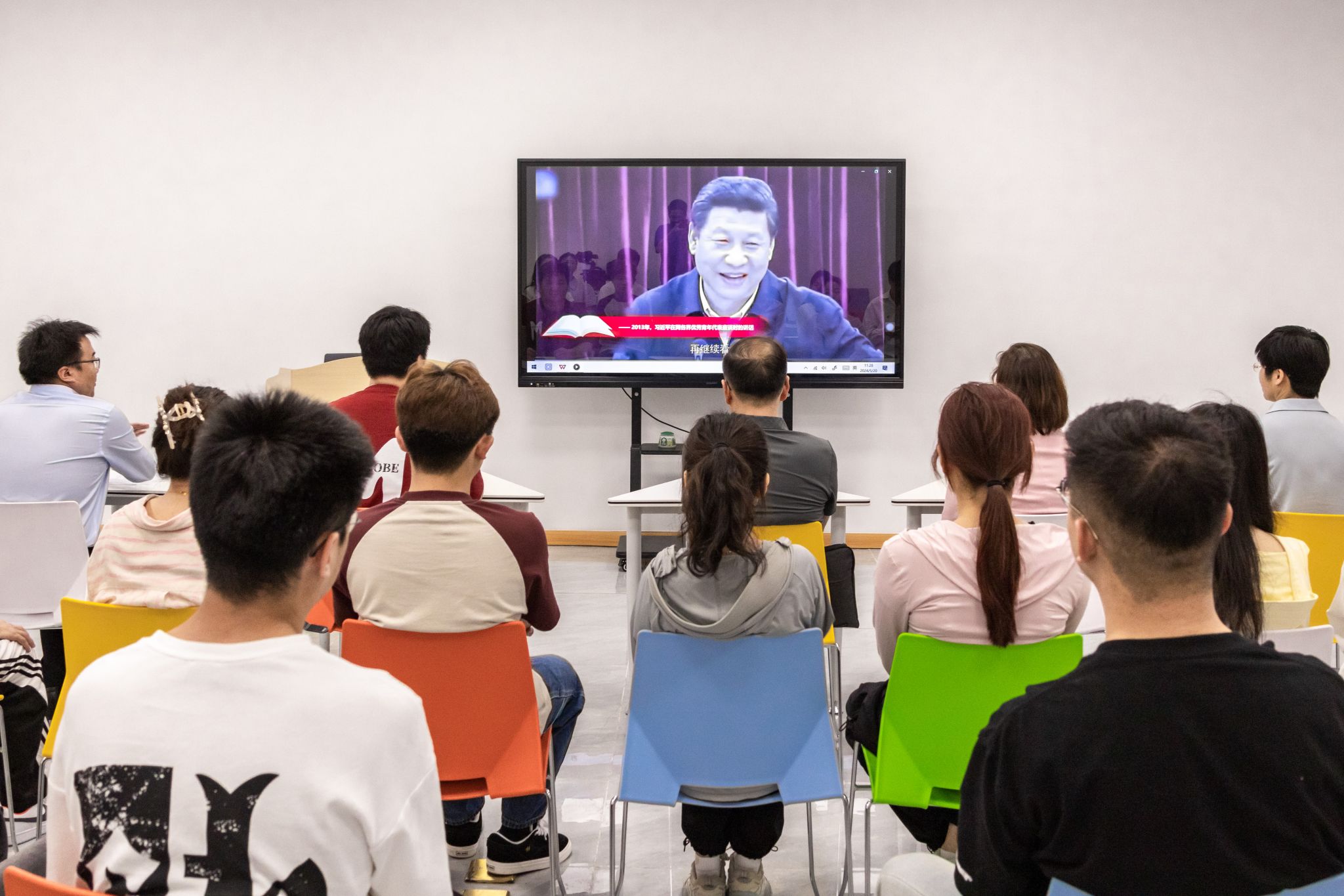 读书会上同学们集体观看了《习近平读书故事》系列视频,朱一、卢程龙、孙绍钧、赵明慧4位青年依次分享推荐了自己喜爱的书籍《习近平在正定》《习近平在厦门》《习近平扶贫故事》《习近平与大学生朋友们》等,并自书中节选“原汁原味”的“习言习语”,朗读经典篇章段落,各抒己见,引起了青年读者的强烈共鸣,现场不时响起热烈的掌声。