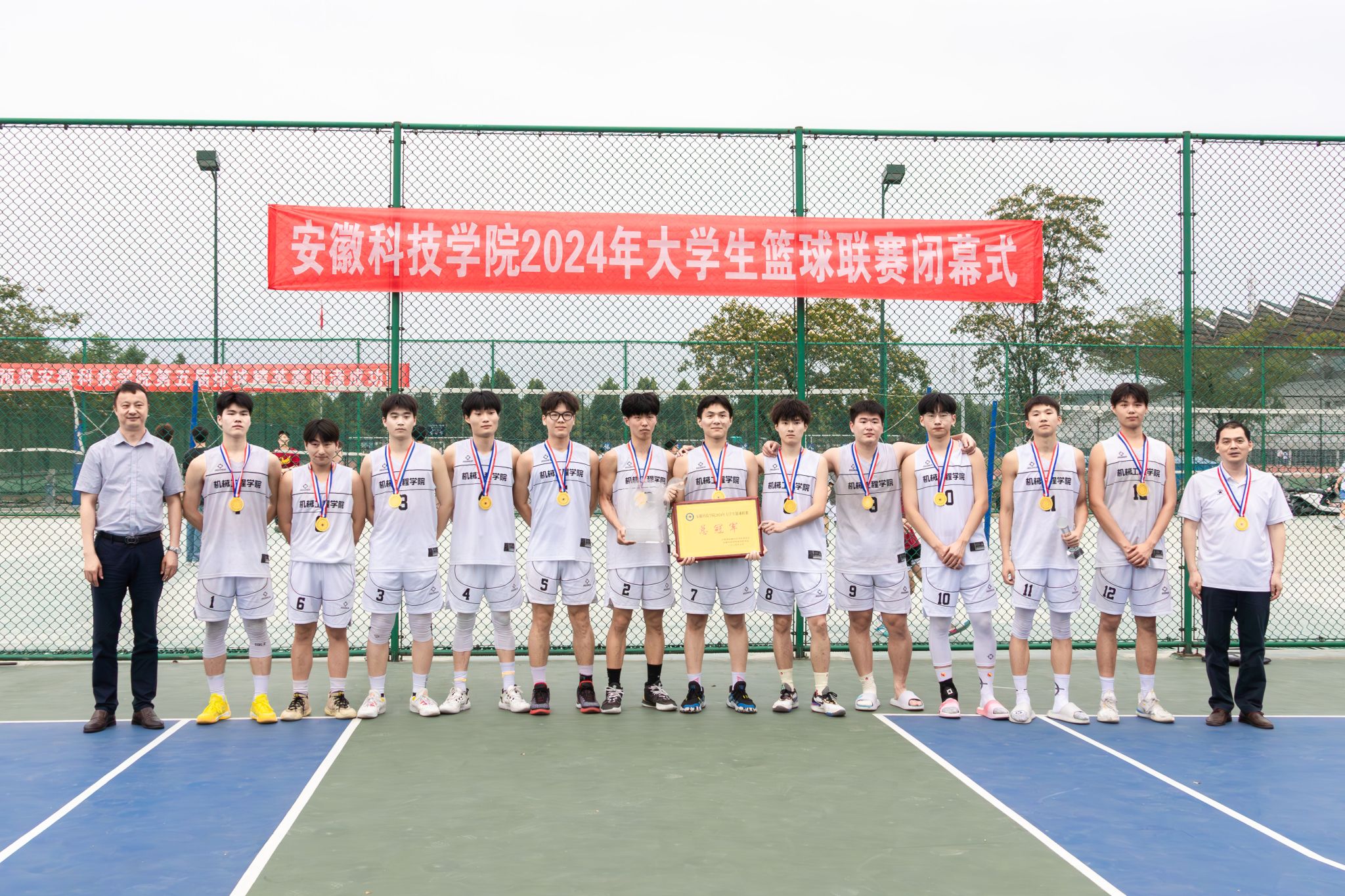 与会领导嘉宾分别为2024年大学生篮球联赛总冠军、亚军、季军以及总决赛MVP颁奖并合影留念。(特约通讯员:王明浩 摄影:邓凯 沙爱佳 审核:张聪)