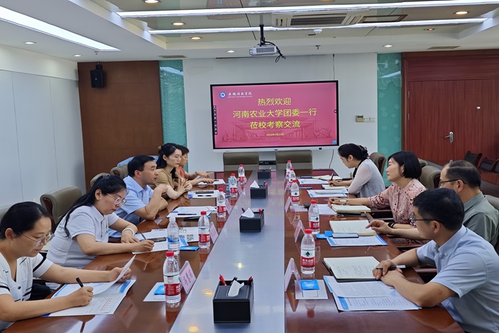 7月23日,河南农业大学团委书记贾云飞、团委副书记张倩、经济与管理学院党委副书记李蓓蓓、经济与管理学院副院长赵友平一行来乐鱼平台_乐鱼(中国)一站式服务平台考察交流工作。校团委书记张聪、管理学院党委书记丁景良、管理学院副院长郑谦、团委副书记李刚等参加会议。会议由张聪主持。