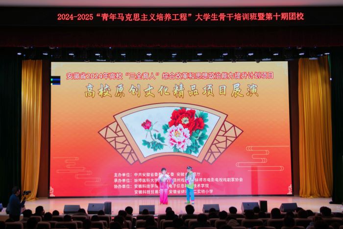 高校原创文化精品项目展演以“赓续弘扬传统文化,共筑民族精神家园”为主题,着眼于稀有地方剧种泗州戏的活态传承,分为《生日礼物》、《懒大嫂赶会》、《走娘家》三个剧目,以国家非遗项目泗州戏(拉魂腔)为艺术根基创作的校园文化精品,用身边人、身边事、身边精神力量等元素构建一出经典的校园原创传承剧目。展演通过戏剧戏曲的形式传递真善美,以思政艺术的方式勾勒出浓郁的生活画卷,以艺术的感染力和引导力激发观众、参与者的情感共鸣和思想共识。