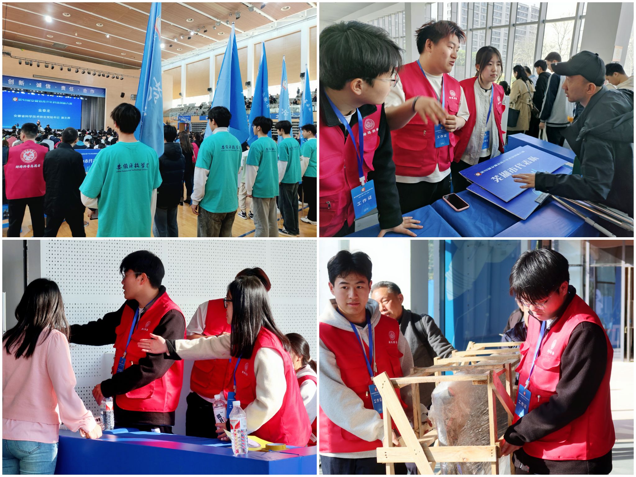 “服务过程中,齐紫晗等同学所在的对接组的志愿者们最辛苦,他们要全程对接各市县代表队,来的最早走的最晚,从签到住宿到路途引导,事无巨细”,蚌埠市科协副主席马萍介绍到,“我看到了安科志愿者们眼里的光,那是属于青春独有的光,是可以照亮未来的光”。李佳乐作为引导组组长,封闭答辩过程中带领志愿者们细心检查着展台电源、作品布置、物料摆放等每一个小细节。“这次来参加比赛的选手都是中小学生,年纪都比较小,我们尽可能的在场管内做好各种服务,帮助他们在场馆内顺利完成比赛” 李佳乐说。