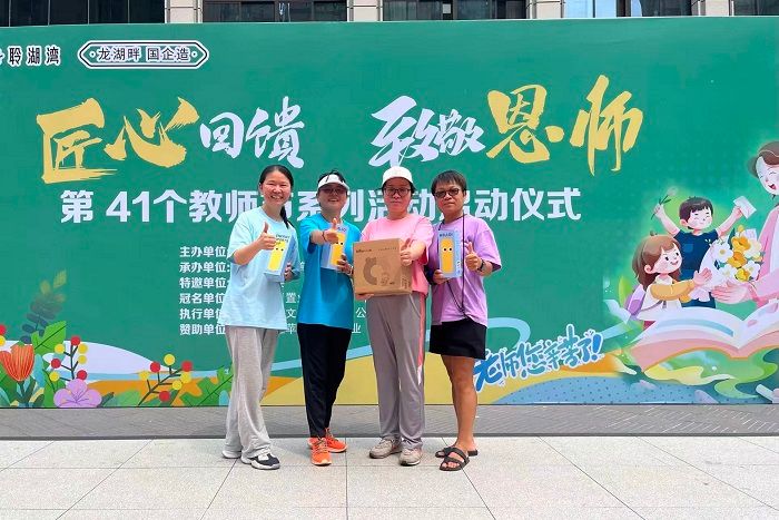 9月6日上午,在龙子湖东岸,随着“活动开始”的一声号令,老师们身着6种不同颜色的定制T恤,开始了环湖6公里的户外漫行。在教练的带领下投入“超大毛毛虫”“十人九足”等趣味游戏。平日里站在讲台前的教师,此刻化身活力满满的参与者,在协作中释放压力,放松心情,增进情谊,享受着教师的节日快乐。