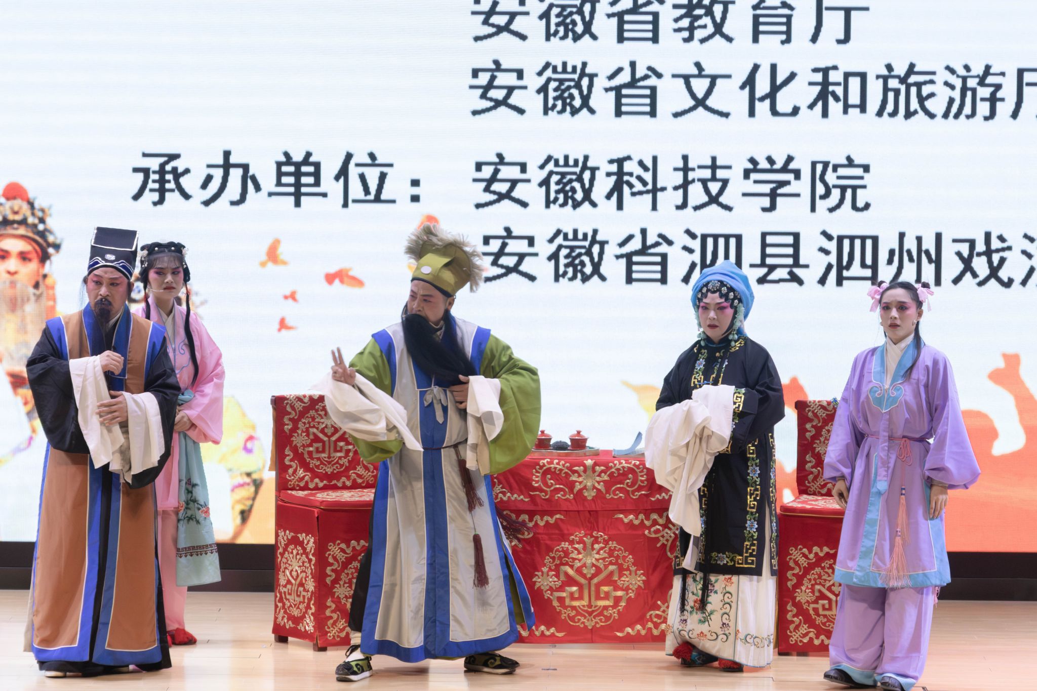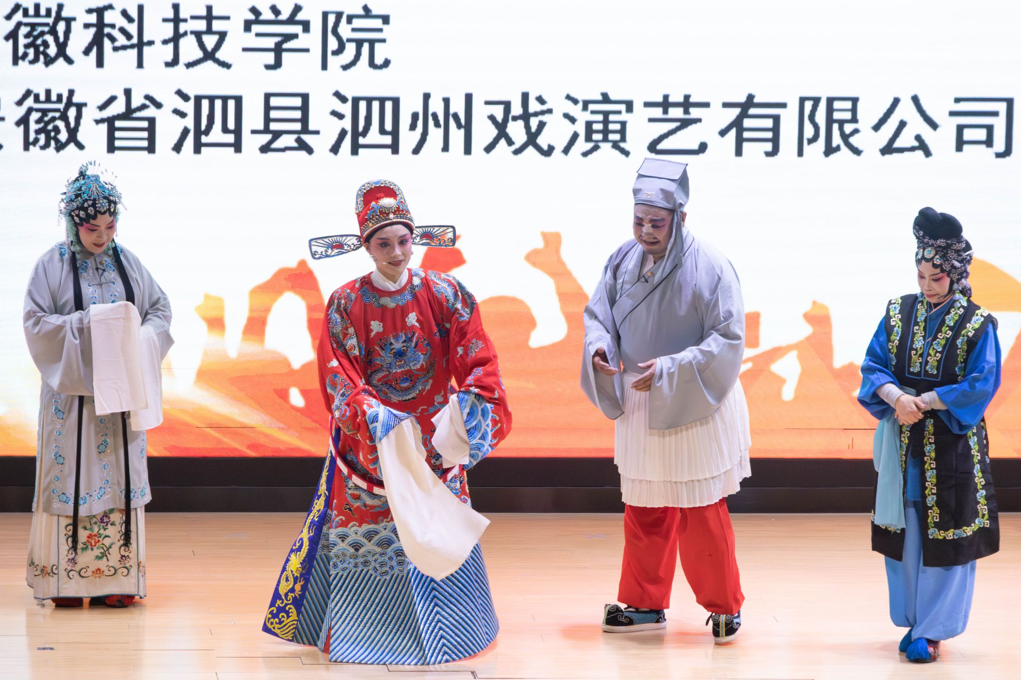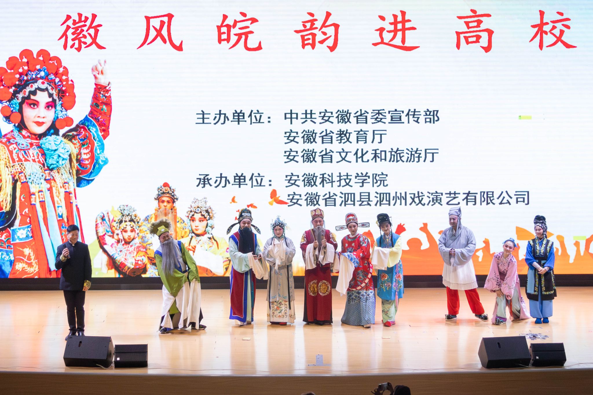 11月25日,由中共安徽省委宣传部、安徽省教育厅、安徽省文化和旅游厅联合主办的2025年“校园大舞台—徽风皖韵”进校园活动在乐鱼平台_乐鱼(中国)一站式服务平台龙湖校区报告厅精彩启幕。党委副书记曹付忠,党委委员、副院长王孝义与300余名师生齐聚一堂,共同欣赏泗县泗州戏非遗传承人带来的经典古装剧目《状元与乞丐》,在传统戏曲的独特魅力中感受文化传承与思政教育的深度融合。