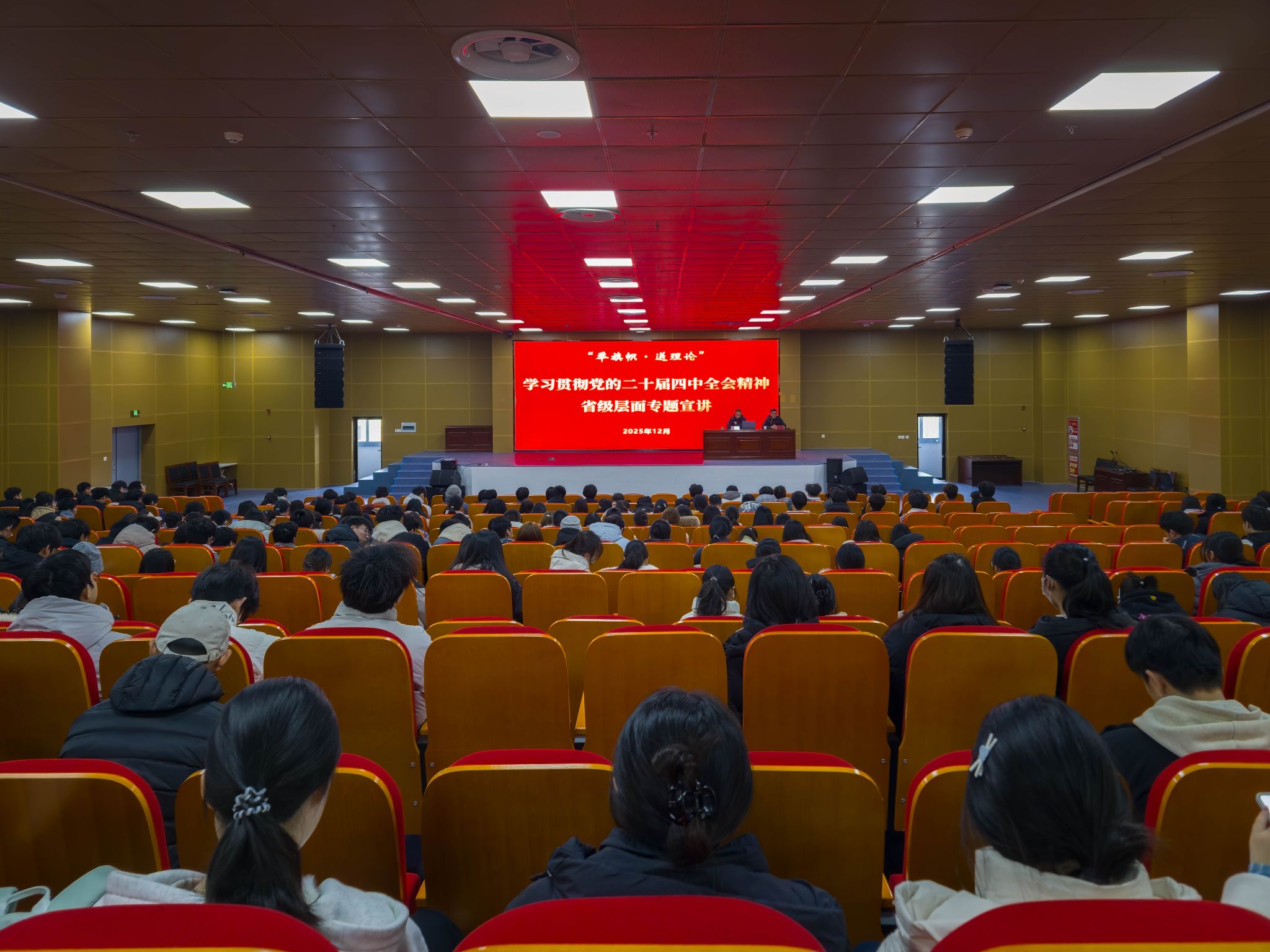 12月29日上午,乐鱼平台_乐鱼(中国)一站式服务平台滁州校区图书馆报告厅内座无虚席,300余名师生齐聚一堂,共同聆听“举旗帜・送理论”学习贯彻党的二十届四中全会精神省级层面专题宣讲。安徽省高校思政课教学指导委员会委员、省委讲师团理论宣讲专家库成员蔡胜教授受邀作专题辅导报告,为青年学子送上了一场兼具理论深度与实践温度的思想盛宴。校团委副书记李刚主持报告会。