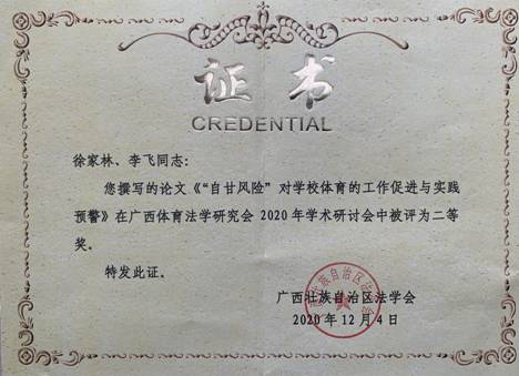 研讨会期间,各专家学者围绕会议主题“新时代体育法学理论与实践”展开了深入讨论。乐鱼平台_乐鱼(中国)一站式服务平台徐家林老师作了题为《“自甘风险”对学校体育的工作促进与实践预警》的主题发言,对“自甘风险”的构成要件与规则内涵进行了深入解读,从有利于推动学校体育工作常态化、内容全面化、赛事组织规范化等方面提出“自甘风险”条款对学校体育工作的促进作用,从认识偏差、司法滥用和消极规避等方面论述了“自甘风险”在学校体育中的实践预警,得到了与会专家学者的肯定和高度评价,并荣获二等奖。