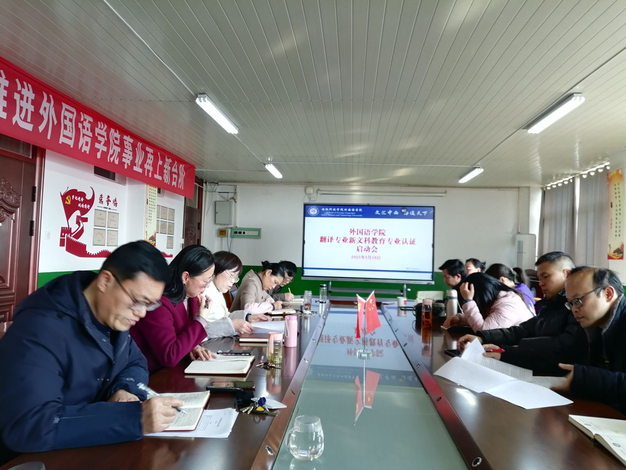 3月19日下午,外国语学院在学知楼五楼会议室召开翻译专业新文科教育专业认证启动会。外国语学院党政领导和翻译教研室全体教师参加会议。会议由院长刘萍主持。