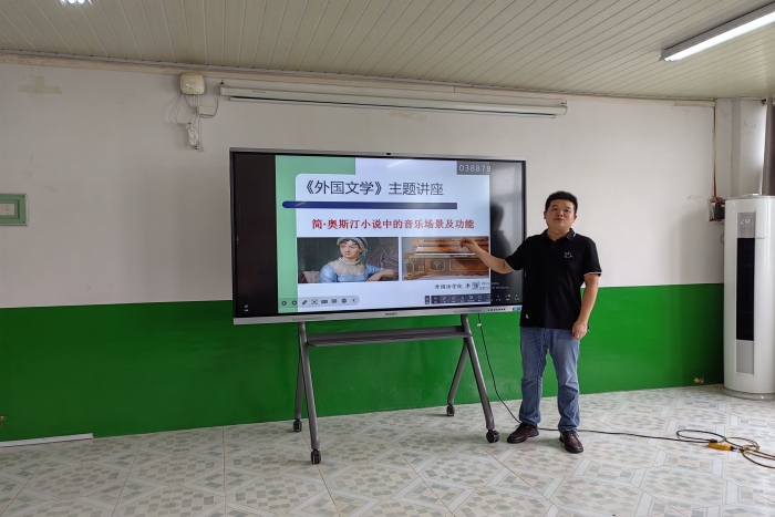 2023年9月13日上午11点,外国文学与文化科研团队在外国语学院会议室举办讲座,探讨简·奥斯汀小说中的音乐场景及功能。此次讲座由李伟老师主讲。