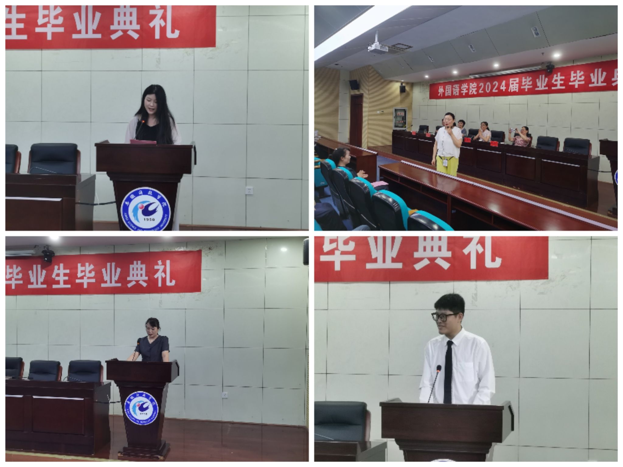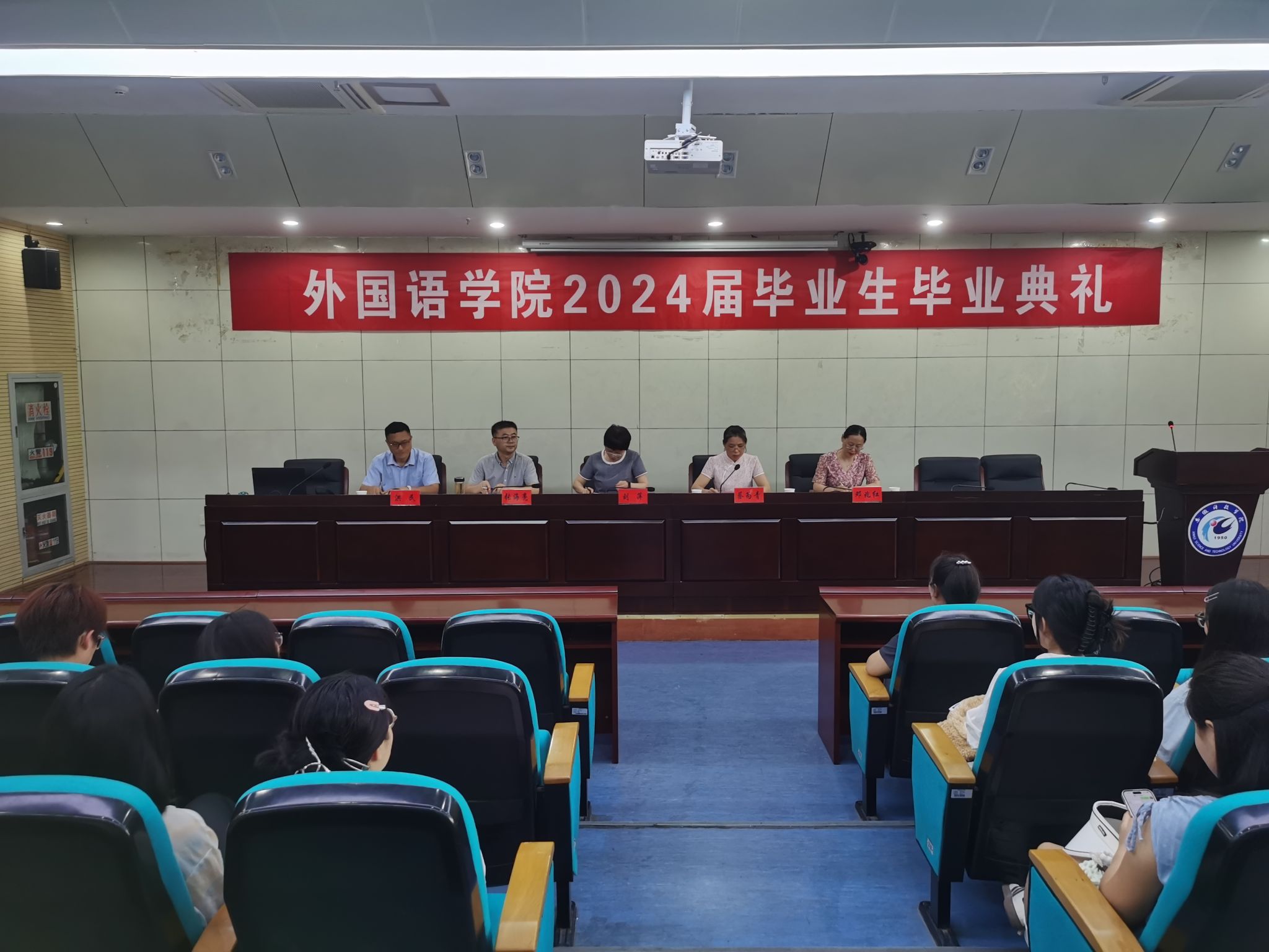 奋楫扬帆启新程,踔厉奋进向未来。6月18日下午,外国语学院2024届毕业生毕业典礼在新图书馆第一报告厅举行。外国语学院党政领导出席毕业典礼。外国语学院教师代表、毕业班辅导员、毕业生家长代表以及毕业生代表参加毕业典礼。典礼由学院党委书记蔡为青主持。