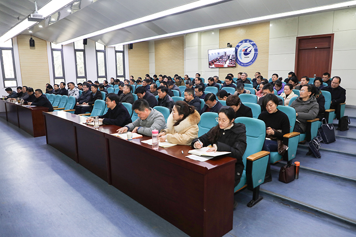 2月17日下午,乐鱼平台_乐鱼(中国)一站式服务平台在会议中心一楼报告厅召开中层干部会议,传达学习全省坚持严的基调持续深化“一改两为”全面提升工作效能大会精神,强调学校作风建设,部署新学期工作。党委书记蒋德勤,党委副书记、院长李震,党委委员、副院长黄远友,党委委员、副院长李升和出席会议。会议由李震主持。