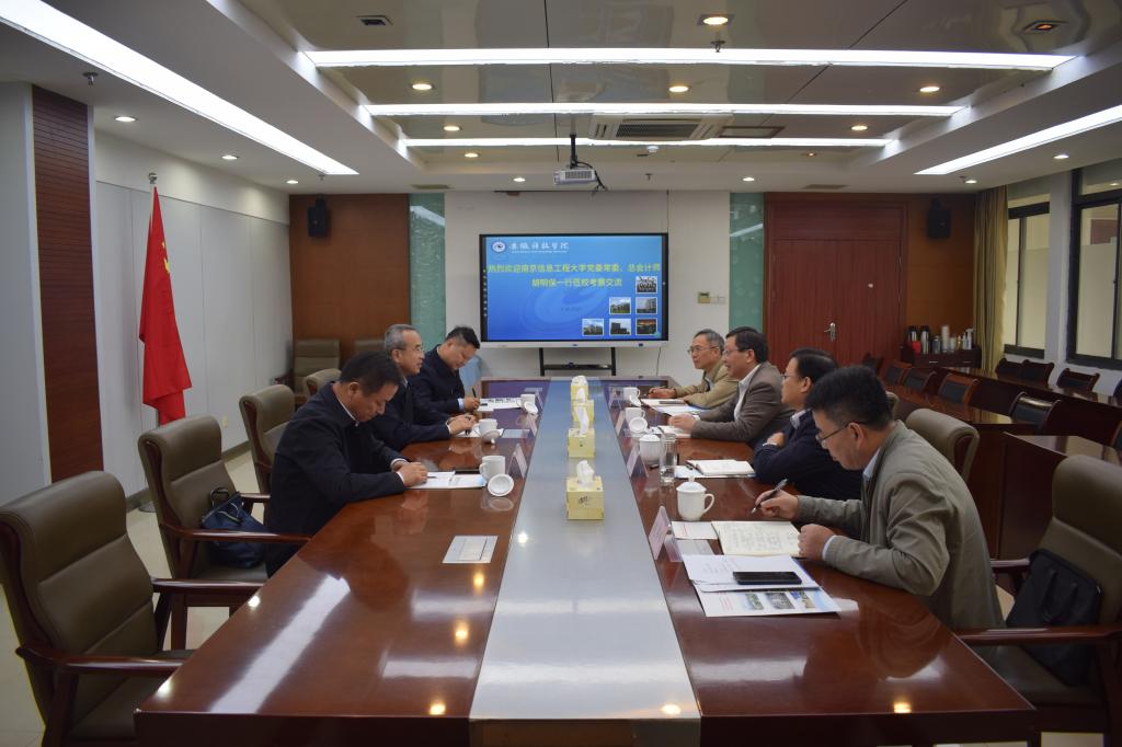 11月9日下午,南京信息工程大学党委常委、总会计师胡明保率发展规划处、金牛湖校区管委会负责人莅临乐鱼平台_乐鱼(中国)一站式服务平台考察交流工作。党委委员、副院长黄远友及党委(校长)办公室、发展规划处、教务处负责人热情接待了客人一行。
