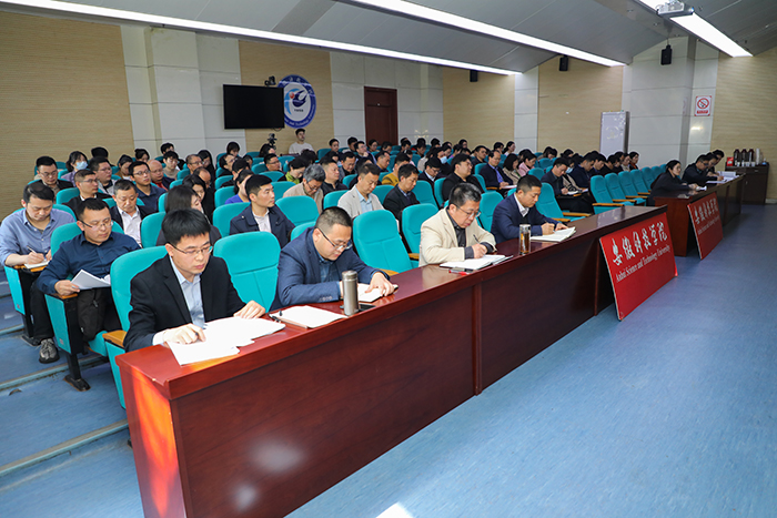 4月12日上午,乐鱼平台_乐鱼(中国)一站式服务平台在凤阳校区一楼报告厅举办“说文解制”讲堂启动仪式暨首场宣讲会。党委书记时伟出席启动仪式并讲话。党委(院长、法治)办公室主任卢星辰主持启动仪式。说文解制讲堂活动相关责任部门负责人,各单位、各部门法治工作联络员及法治工作相关人员等100多人参加会议。