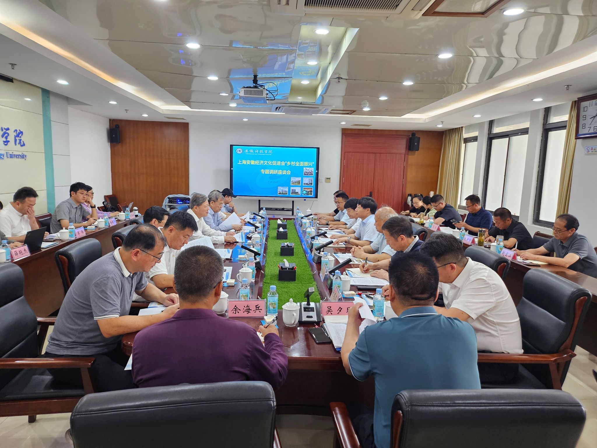调研组成员、安徽小岗干部学院、滁州职业技术学院、滁州市人大及农业农村局、凤阳县委县政府、凤阳县人大负责同志及专家代表参加座谈会,并就如何利用小岗干部学院平台、涉农院校资源培训乡村适用人才开展充分研讨交流。(特约通讯员:王钊 摄影:陈宝 作者:陈子韵 审核:卢星辰)
