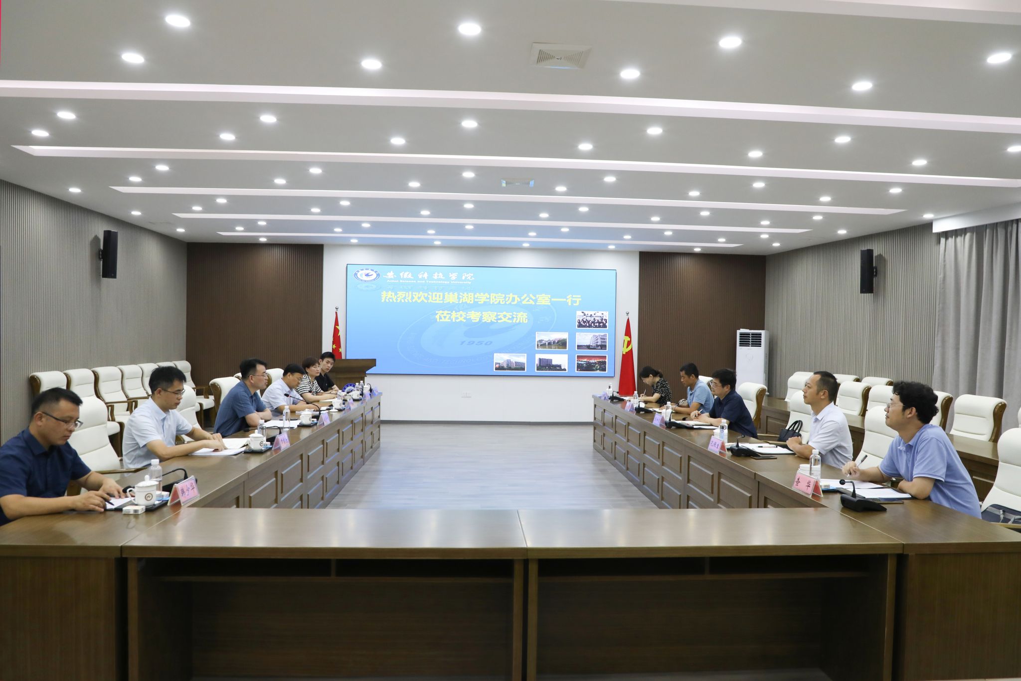 8月18日下午,巢湖学院办公室(法治工作办公室、校友工作办公室)主任陈和龙一行来校交流工作。党委委员、副院长赵伟峰出席座谈会并致辞。党委(院长、法治)办公室正副主任及相关科室负责人参加座谈交流。座谈会由党委(院长、法治)办公室主任卢星辰主持。