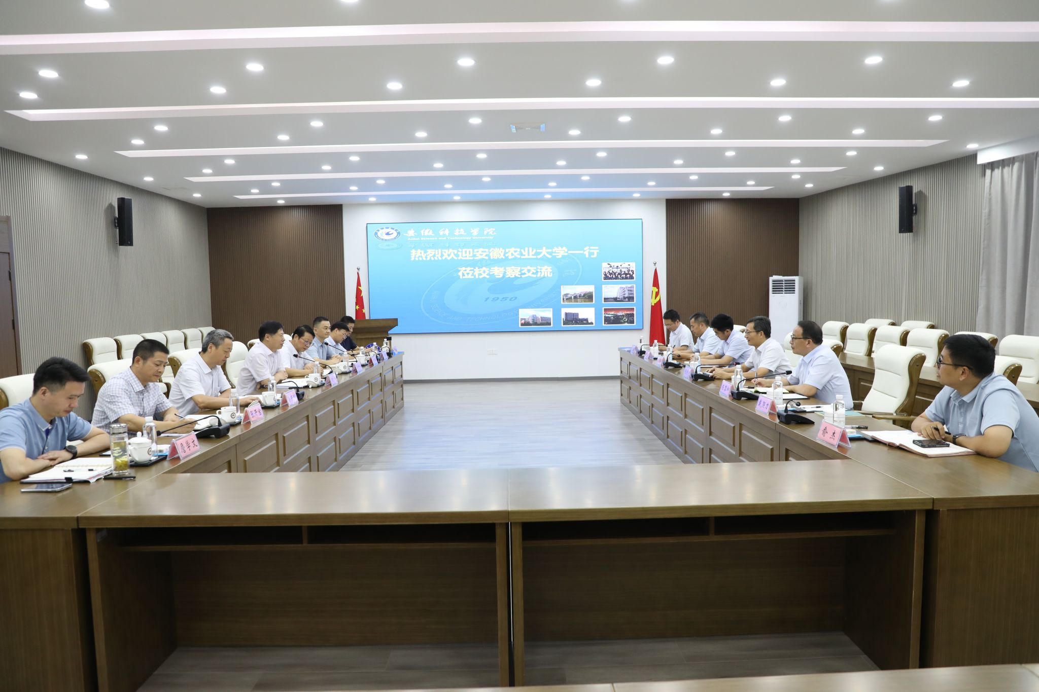 8月27日上午,安徽农业大学党委书记张庆亮率党委常委、副校长陈黎卿,党委常委、纪委书记、监察专员程道传及党政办公室、纪委办公室、人事处、社会合作处等部门负责人莅临乐鱼平台_乐鱼(中国)一站式服务平台考察交流。乐鱼平台_乐鱼(中国)一站式服务平台党委书记时伟,党委副书记、院长李升和,党委委员、纪委书记、监察专员彭庆刚,党委委员、副院长方鸣及对口部门负责人热情接待了张庆亮一行。