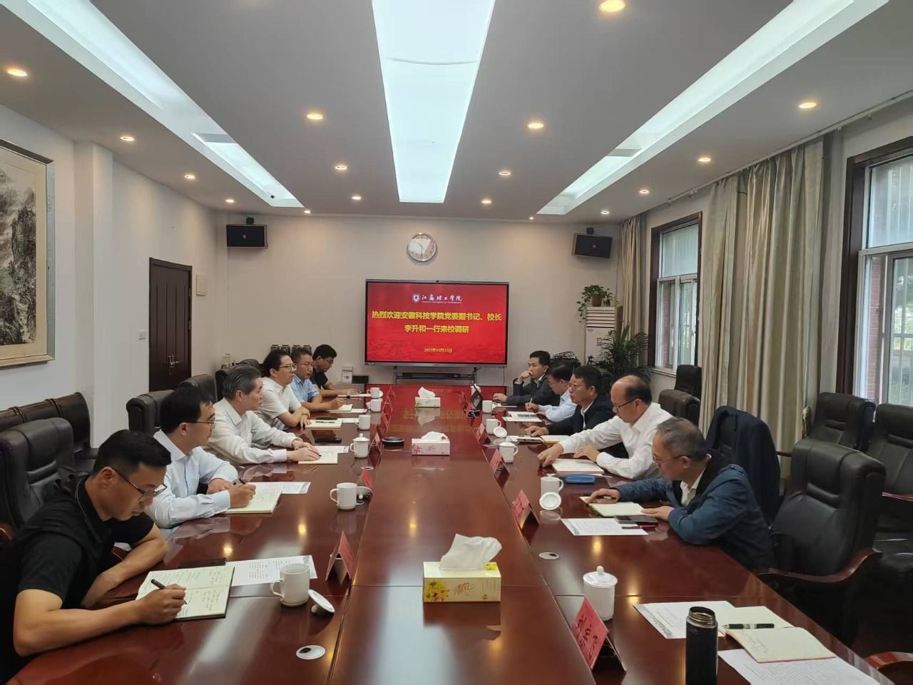 10月15日,党委副书记、院长李升和,党委委员、副院长王孝义率党委(院长)办公室、发展规划处、教务处、科研处一行到江苏理工学院考察交流工作。江苏理工学院党委副书记、院长戴国洪,党委常委、副院长王俊热情接待李升和一行,并出席座谈交流活动。