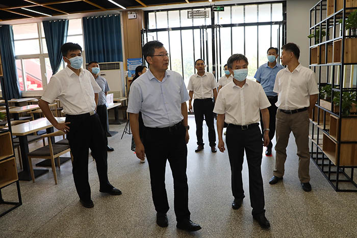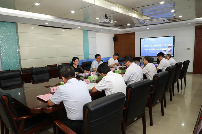 8月24日下午,受省委教育工委委托,安徽师范大学党委副书记周旭,安徽工业大学党委常委、宣传(统战)部部长黄勇,安徽机电职业技术学院党委副书记刘艺莅校实地考察乐鱼平台_乐鱼(中国)一站式服务平台第二届安徽省文明校园创建工作。党委书记蒋德勤,党委委员、副院长黄远友,党委委员、纪委书记、监察专员王强,学校相关职能部门负责人参加汇报会。