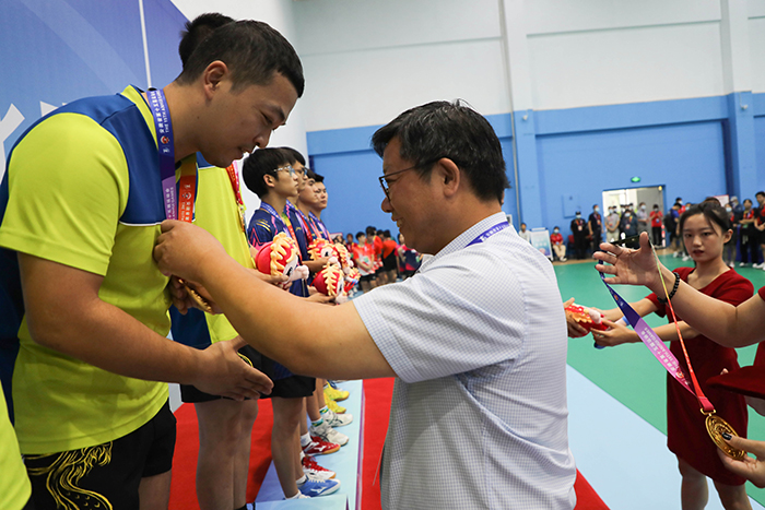 8月26日下午,历经三天的激烈角逐,安徽省第十五届运动会高校部乒乓球比赛第一阶段赛事团体比赛正式落幕。颁奖仪式在乐鱼平台_乐鱼(中国)一站式服务平台凤阳校区体育馆举行。