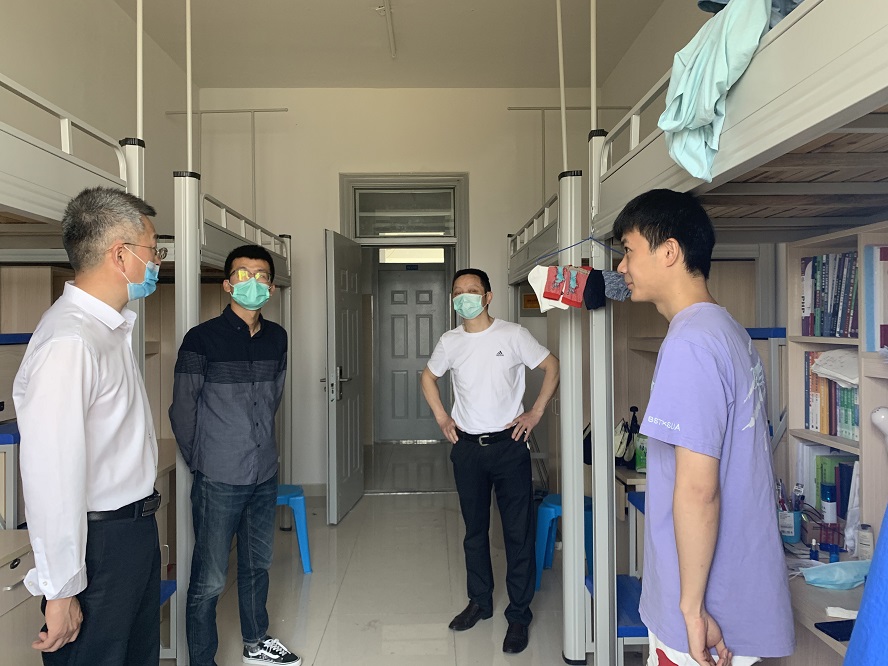 为深入了解返校毕业生在校期间的学习、生活和思想情况,5月28日上午,信息与网络工程学院党总支书记王振其,副院长余宏杰和专职辅导员陈凯、李军成深入学生宿舍看望慰问2020届毕业生,表达学院对毕业生的深切关怀和美好祝愿。
