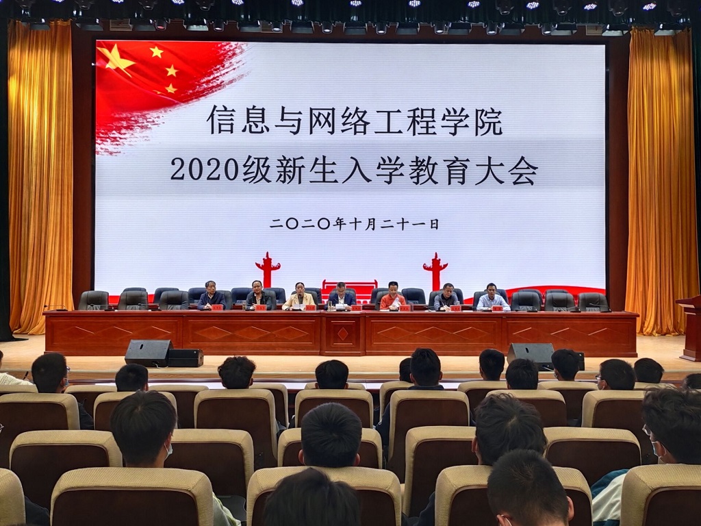 10月21日下午,信息与网络工程学院在龙湖校区东辅楼二楼学术报告厅召开2020级新生入学教育大会。党总支书记王振其、副院长余宏杰、学院长助理何恩节及各系室主任、2020级新生辅导员及415名新生参加会议。会议由副处级辅导员韦乃学主持。