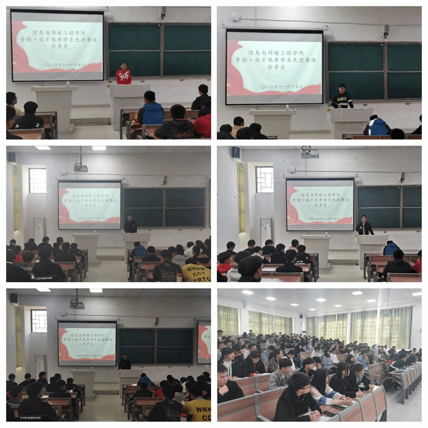 为充分发挥榜样示范作用,激励学生积极进取,掌握正确的学习方法,树立正确的学习目标。11月15日下午,信息网络工程学院于致知楼C111召开了“责任·成才”优秀学生先进事迹分享会。学院2018级王飞龙、朱序、陈伟祺、王蝶、张奇南五位优秀学生代表担任主讲。学院专职辅导员王培培、李军成以及2020级学生参加本次会议,会议由王培培主持。