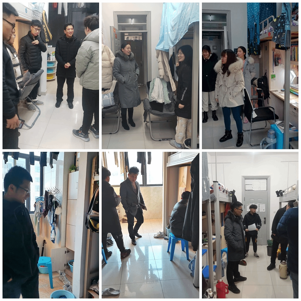 12月30日下午,学院集中开展期末学生宿舍安全卫生大检查。学院正处级组织员周向群、副处级辅导员韦乃学、专职辅导员王培培、陈凯、李军成、崔北坤带队深入学生宿舍进行检查。检查重点在于冬季宿舍安全教育和隐患排查及宿舍卫生大检查,促进宿舍良好环境的形成。