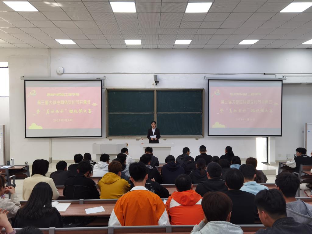 为了引导广大同学增强网络安全意识,积极参与网络文化建设,传递网上正能量,4月14日下午,信息与网络工程学院于致知楼A111举办第三届大学生网络文化节开幕式暨“美丽安科”微视频大赛评选活动。信息与网络工程学院党委副书记韦乃学、副院长曹浩、团委书记汪琦、专职辅导员陈凯、李军成、崔北坤出席开幕式,学院学生会全体成员、2020级全体学生干部参加了开幕式。开幕式由数据科学与大数据专业192班学生徐璐瑶主持。