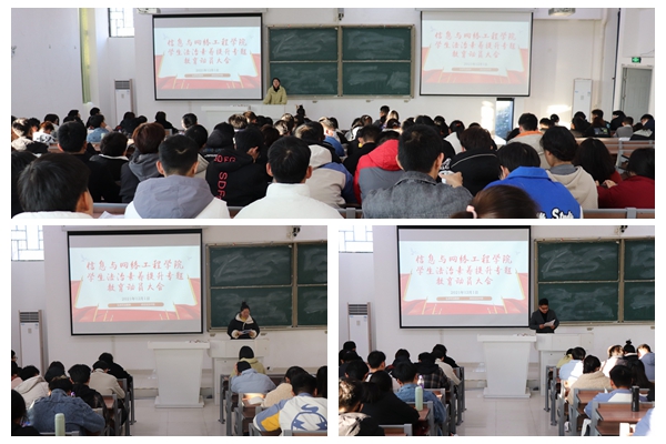 为深入学习贯彻习近平法治思想,加强学生法制教育,提升学生法治素养,12月1日下午,信息与网络工程学院于致知楼C111教室召开学生法治素养提升专项行动动员大会。学院团委书记汪琦,专职辅导员丁阿敏、崔北坤出席了本次大会,学生会及各班级学生干部参加大会,会议由汪琦主持。