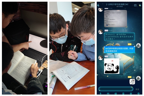 线上加线下,一起学起来。假期不停学,学风建设抓起来。利用假期,汪琦指导班级里专业功底扎实的同学们组成答疑小分队,组建线上答疑群,收集同学们学习中的课程重难点,安排在线上答疑群上和后期晚自习时间,开展课程知识点中的难点讲解。指导学生充分利用这种互助的学习方式,解决学习中的疑难困惑,提高学习兴趣,培养同学之间的合作精神,加强班级学风建设。