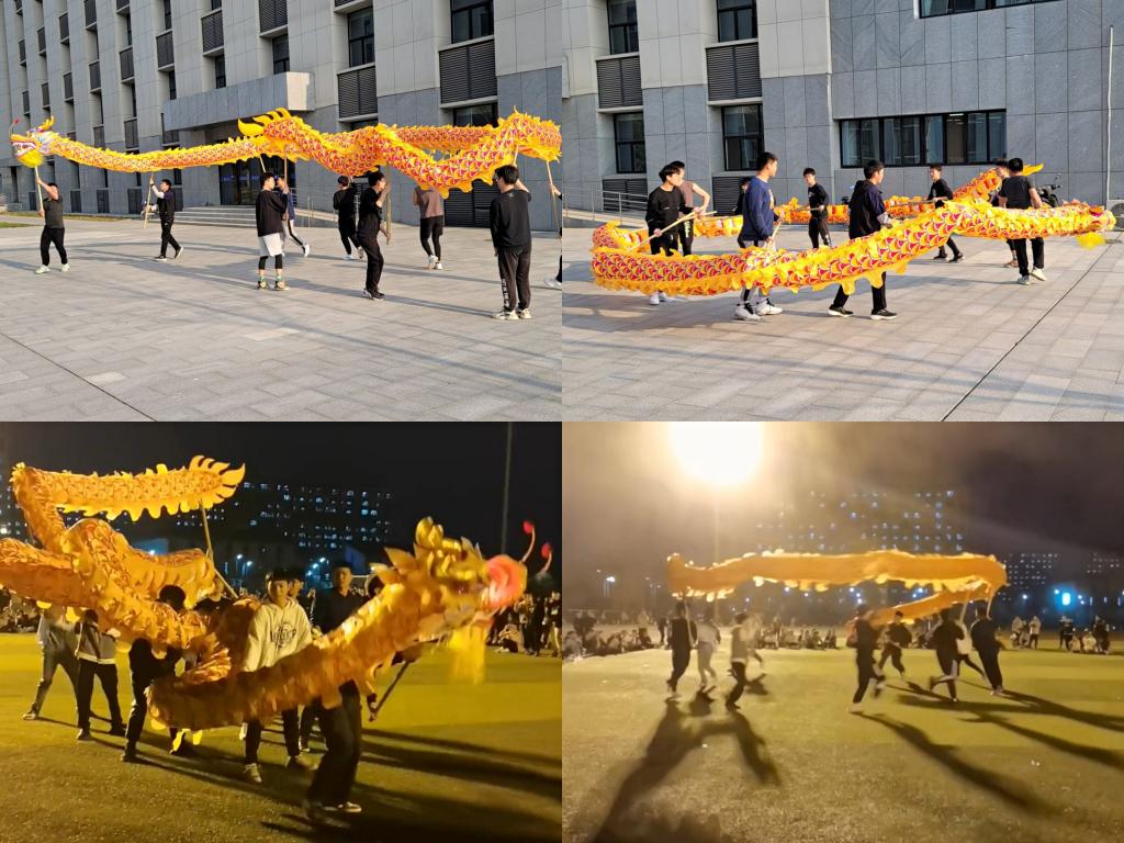 金龙飞舞,绽放青春!舞龙队由各班级同学自愿报名、精心挑选后组成,利用课余时间开展训练。清明假期,学生无课,正是训练好时光,训练场上,舞龙队员们奋力舞动着金色龙头、龙身、龙尾,不断地展现“金龙翻身”、“金龙穿衣”、“八字舞龙”、“龙飞起伏”、“跳龙摇船”等动作姿势,一个个精彩的动作表演,为场下的观众来带一场极具冲击力地视觉盛宴。