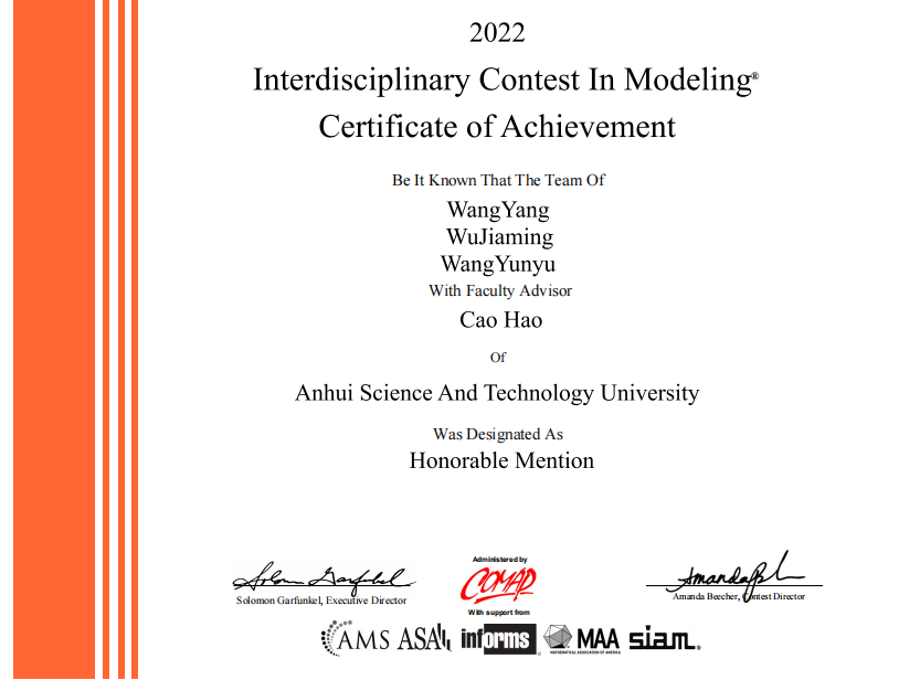 近日,2022年度美国大学生数学建模竞赛获奖结果公布,由信息与网络工程学院数据科学与大数据技术专业2019级汪洋、吴佳明、汪蕴钰等3位同学组成的团队(指导老师:曹浩)在全球近3万支参赛队伍中脱颖而出,荣获赛事的Honorable Mention(国际二等奖),这是乐鱼平台_乐鱼(中国)一站式服务平台队伍继2015年首次获得Honorable Mention后再次荣获赛事的国际二等奖。