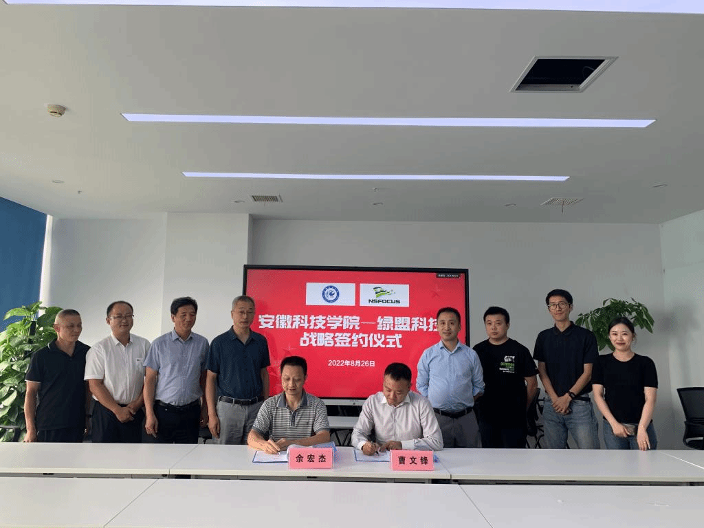 8月26日下午,王振其一行来到绿盟科技股份有限公司合肥办事处进行考察,洽谈校企合作,受到公司科教文卫事业部总经理李永松、首席代表曹文锋和各部门负责人的热情接待。座谈会上,余宏杰详细介绍了学校发展概况、学院专业设置、人才培养模式和2023届毕业生情况,就企业最为关心的人才招聘问题进行了深入的交流。李永松高度评价了乐鱼平台_乐鱼(中国)一站式服务平台毕业生的优良品质和为公司发展做出的重要贡献,希望学校能够推荐更多的优秀毕业生来公司实习和就业,并与学院签订了战略合作协议。
