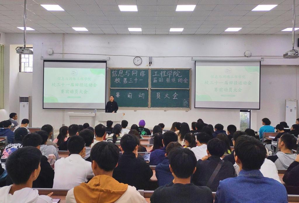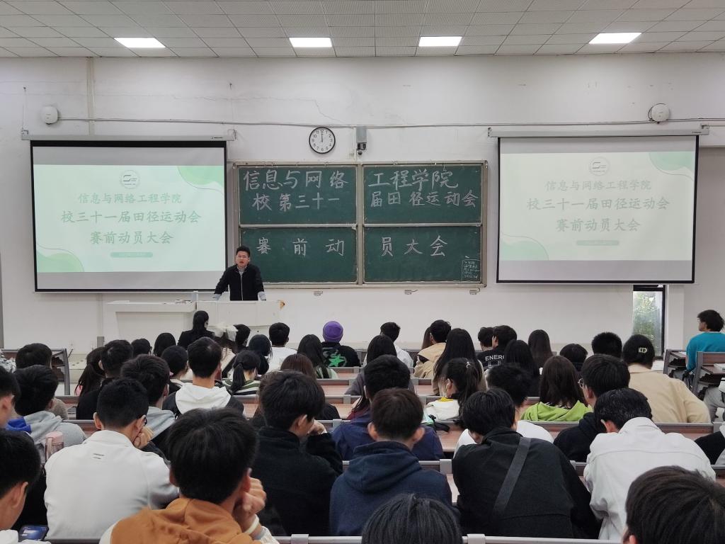 为充分调动我院运动员的积极性,保障运动会期间各项工作有序开展。11月9日中午,信息与网络工程学院于致知楼C111召开校第三十一届运动会赛前动员大会。学院党委副书记、纪委书记韦乃学、学生会指导老师崔北坤出席本次会议,全体运动员、学生会成员、各班体育委员以及各班级志愿者参加了本次会议,本次会议由崔北坤主持。