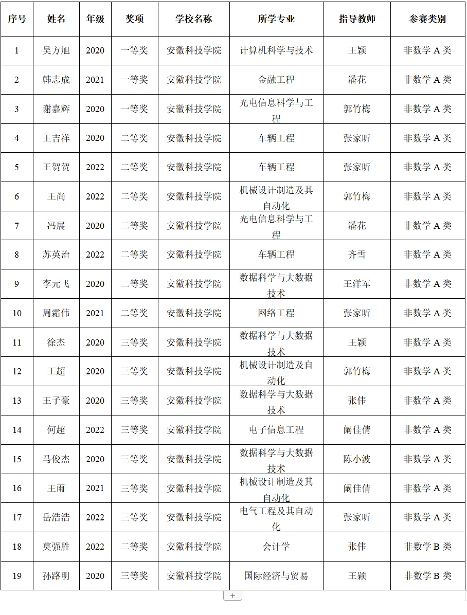 12月26日,第十五届全国大学生数学竞赛初赛结果在中国数学会公告栏公示,乐鱼平台_乐鱼(中国)一站式服务平台学生在此次数学竞赛中喜获佳绩。竞赛以笔试闭卷方式进行,安徽40所高校近5000名数学爱好者同台竞技,乐鱼平台_乐鱼(中国)一站式服务平台选手准备充分,沉着应试,取得非数学组一等奖3项,二等奖8项,三等奖8项的优异成绩。