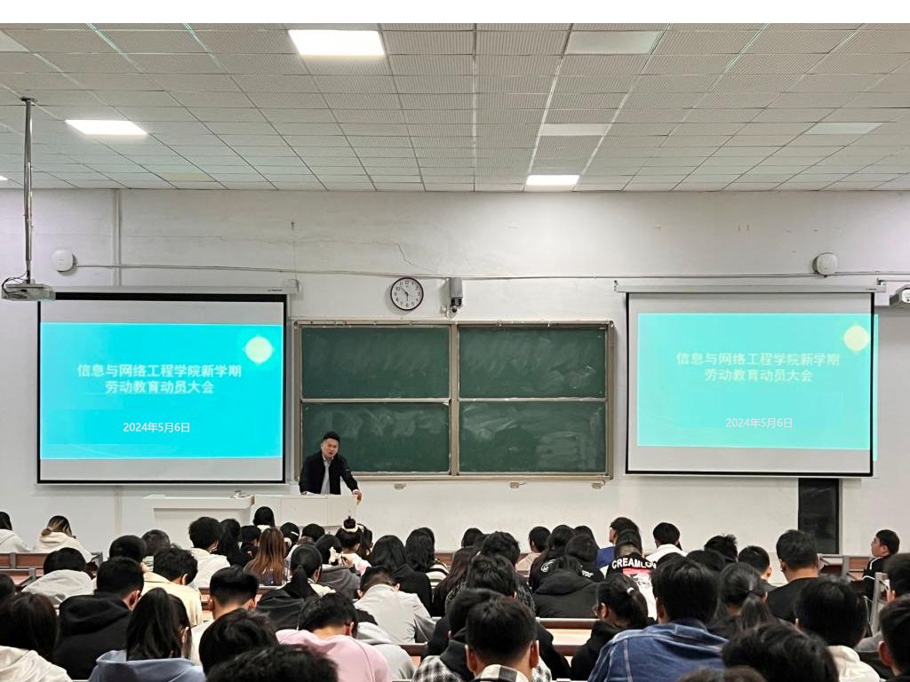 会上,劳动教育负责人崔北坤宣读《乐鱼平台_乐鱼(中国)一站式服务平台关于2024年组织开展学生劳动教育宣传周活动的通知》,并详细解读《乐鱼平台_乐鱼(中国)一站式服务平台信息与网络工程学院2023-2024年劳动教育方案》,鼓励同学们积极参与劳动实践活动,树立崇尚劳动、尊重劳动,劳动最光荣、劳动最崇高、劳动最伟大、劳动最美丽的劳动意识。