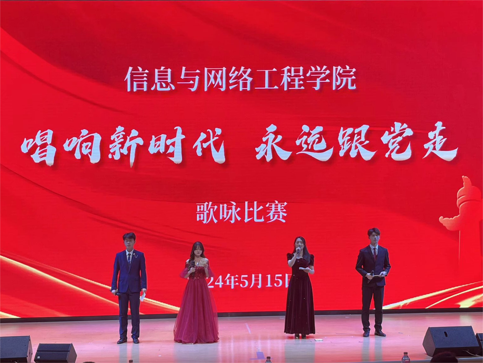 为歌颂党的辉煌历程,培养学生爱国主义情怀,5月15日晚,信息与网络工程学院在东辅楼报告厅举办了第六届“唱响新时代 永远跟党走”歌咏比赛。学院党委副书记韦乃学、全体辅导员及兄弟学院学生会主席组织观看比赛,学院23级各班级学生参加比赛,比赛由王羽萱、任淑慧、齐志铭、夏俊杰主持。