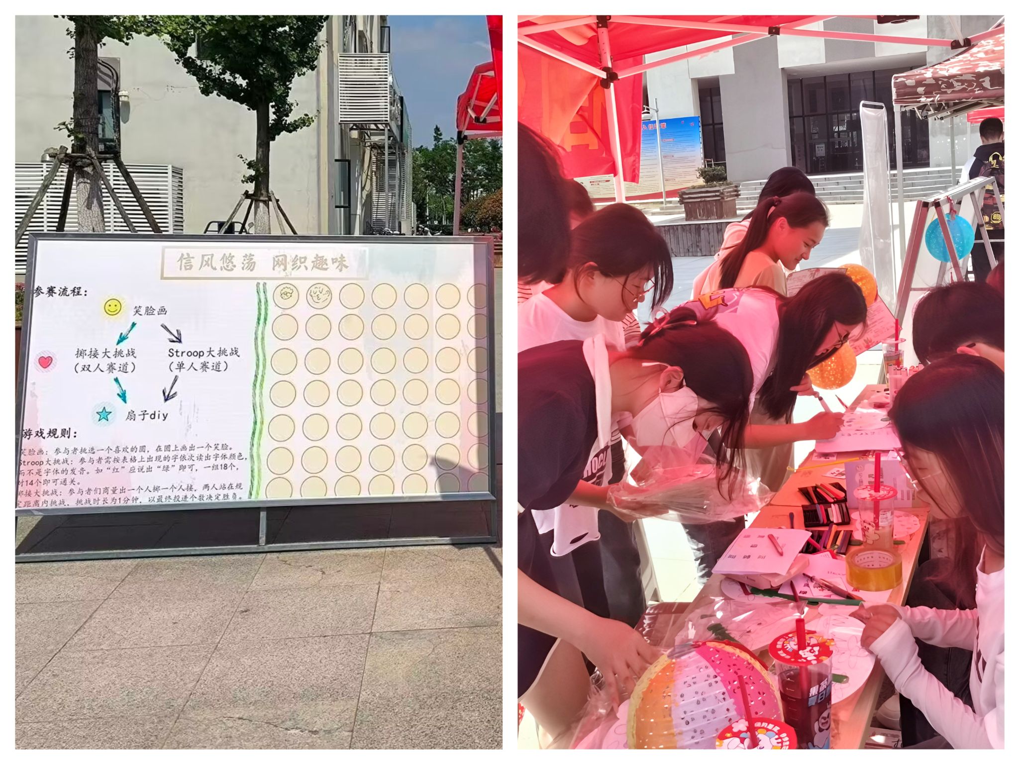 为丰富大学生的业余生活,进一步强化学生心理健康指数,2024年5月22日信息与网络工程学院,于食堂小广场开展了以“信风悠荡,网织趣味”为主题的心里游园会系列活动。此次活动设计了丰富多彩,灵活多样的实践活动,主要由笑脸画,STROOP大挑战和掷接大挑战这三个游戏活动,引领学生在游戏中将"灰色心情""阴霾情绪"清出脑海,构建积极向上、理性平和的良好心态。
