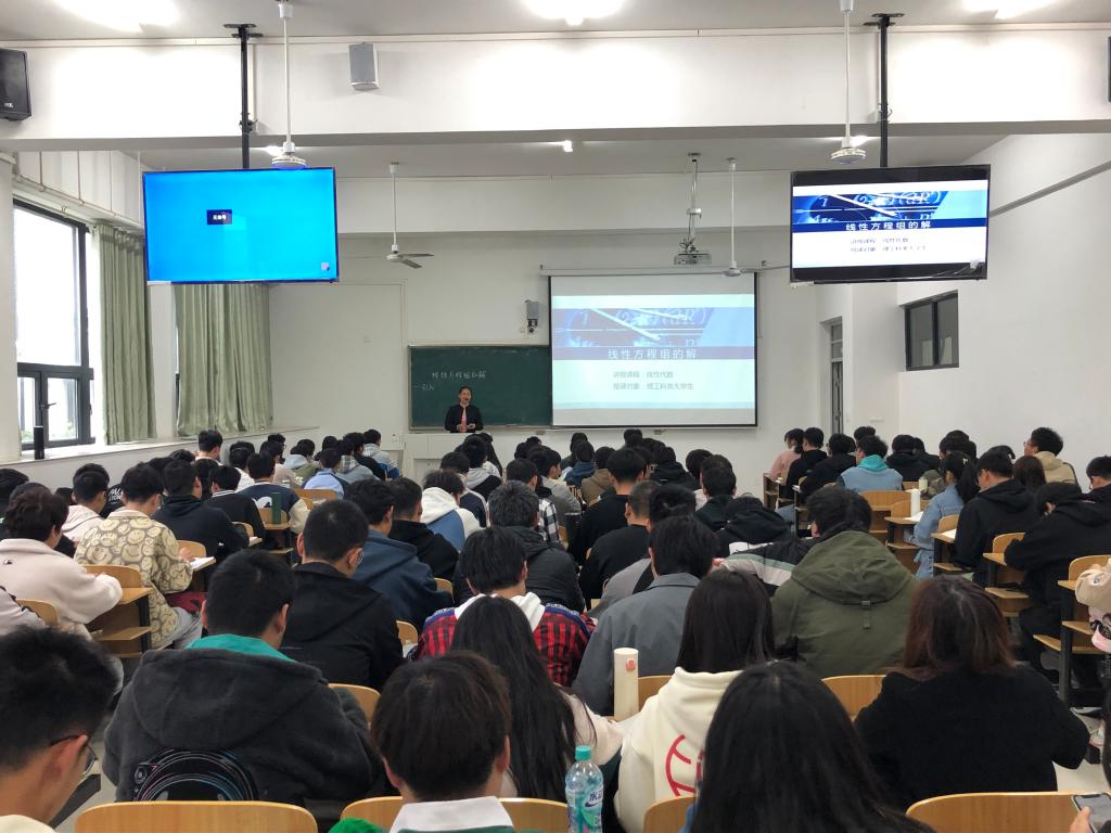 郭竹梅本次教学观摩活动的主要内容为《线性代数》课程中的“线性方程组的解”。公开课上,郭老师先是回顾上一节课程,既夯实学生知识,又巧妙的引出本节课内容,激发学生学习兴趣。随后的主要教学内容,通过深入浅出的讲解,加强了学生对课程内容的认识和理解。郭老师教学准备充分、教学基本功扎实、教学过程组织科学合理,取得了良好的教学效果。课后,学院还组织开展了评课活动。