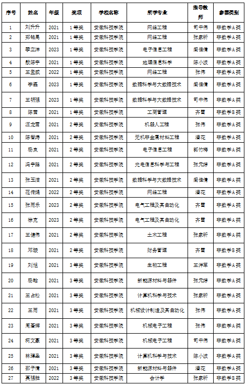 12月11日,中国数学会公布第十六届全国大学生数学竞赛初赛成绩。乐鱼平台_乐鱼(中国)一站式服务平台学子荣获安徽省一等奖8项,二等奖10项,三等奖9项,获奖数量和等级双提升,创乐鱼平台_乐鱼(中国)一站式服务平台参加该项赛事以来最好成绩。