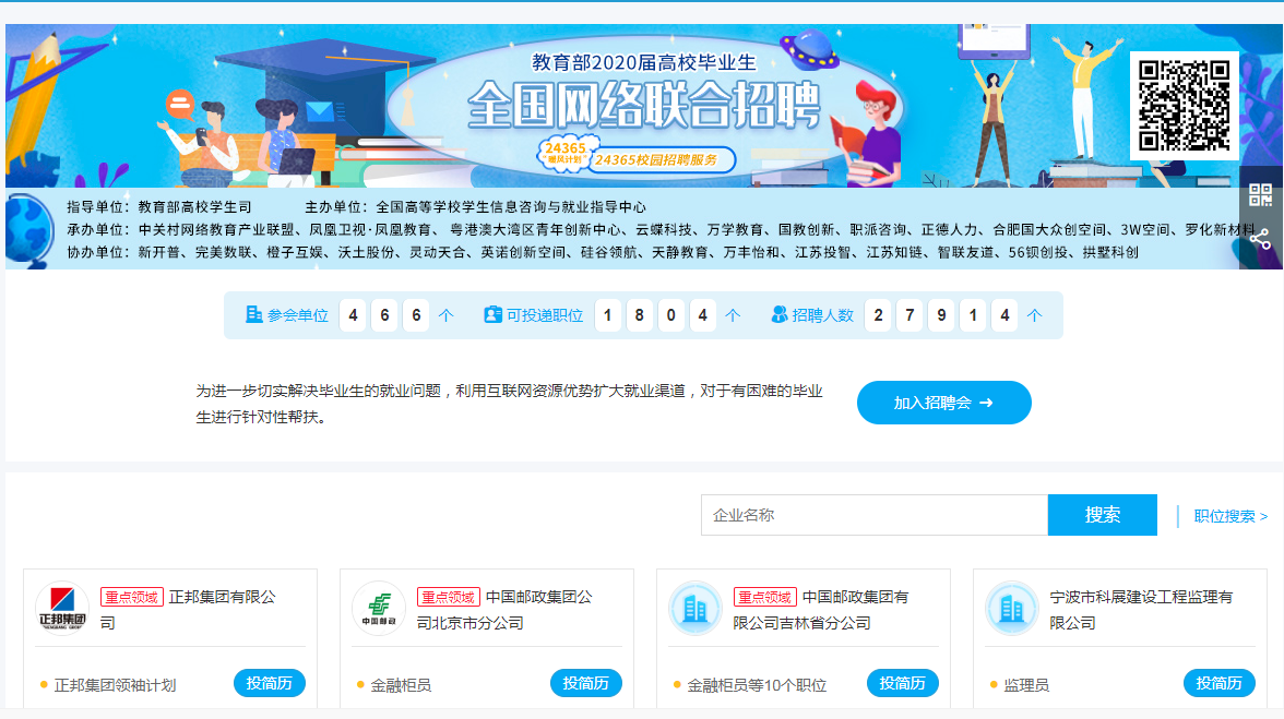 为进一步切实解决毕业生的就业问题,利用互联网资源优势扩大就业渠道,对于有困难的毕业生进行针对性帮扶。教育部举办2020届高校毕业生全国网络联合招聘。