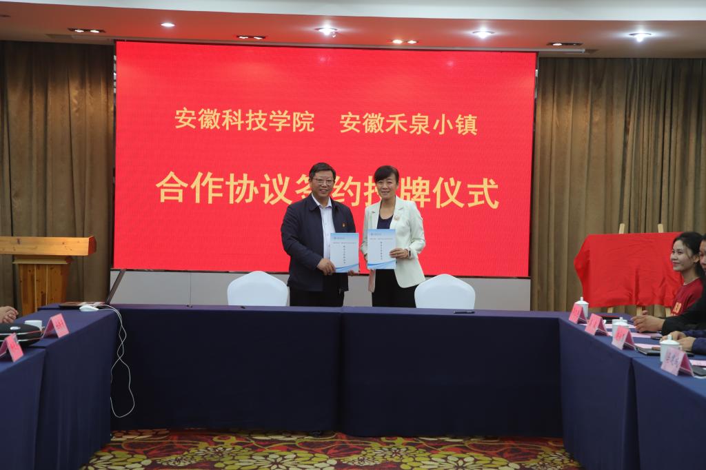 蒋保安代表禾泉小镇对蒋德勤一行的到来表示热烈欢迎,对签约授牌仪式的如期举行表示祝贺,并简要介绍了禾泉小镇的发展历程以及与安徽科技学的校企合作开展情况,期望能与乐鱼平台_乐鱼(中国)一站式服务平台开展更加深入,更加全面的务实合作。