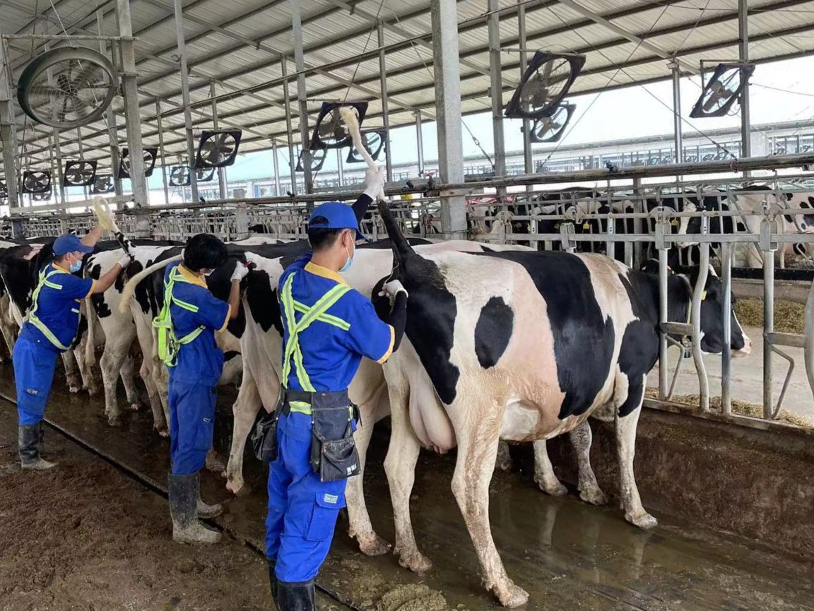 牛羊科技小院成员动物科学学院畜牧领域研究生来到认养一头牛乳业有限公司河北省康宏牧业奶牛养殖基地。牧场结合“牛羊科技小院”暑期志愿服务活动计划进行了相应部署。小院成员在牧场饲养部、兽医部、犊牛部、繁育部等部门分别进行轮岗学习。团队成员通过学习,熟练掌握奶牛体况评分、步态评分、青贮饲料感官评定、折光仪的使用等专业技能,详细了解规模化奶牛场的生产流程。通过在牧场的实际操作与锻炼,队员们充分认识了奶牛养殖关乎食品安全,需要牢固树立“安全第一”的思想意识,体会了奶牛养殖需要制定周详计划的重要性,提升了解决实际问题的能力。